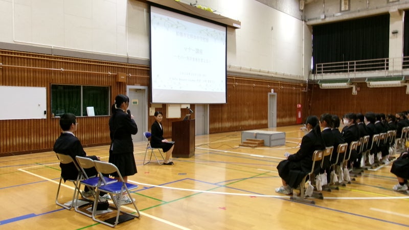 先日、千葉県船橋市立坪井中学校様にて、今年度2回目のマナー講座を担当させていただきました。